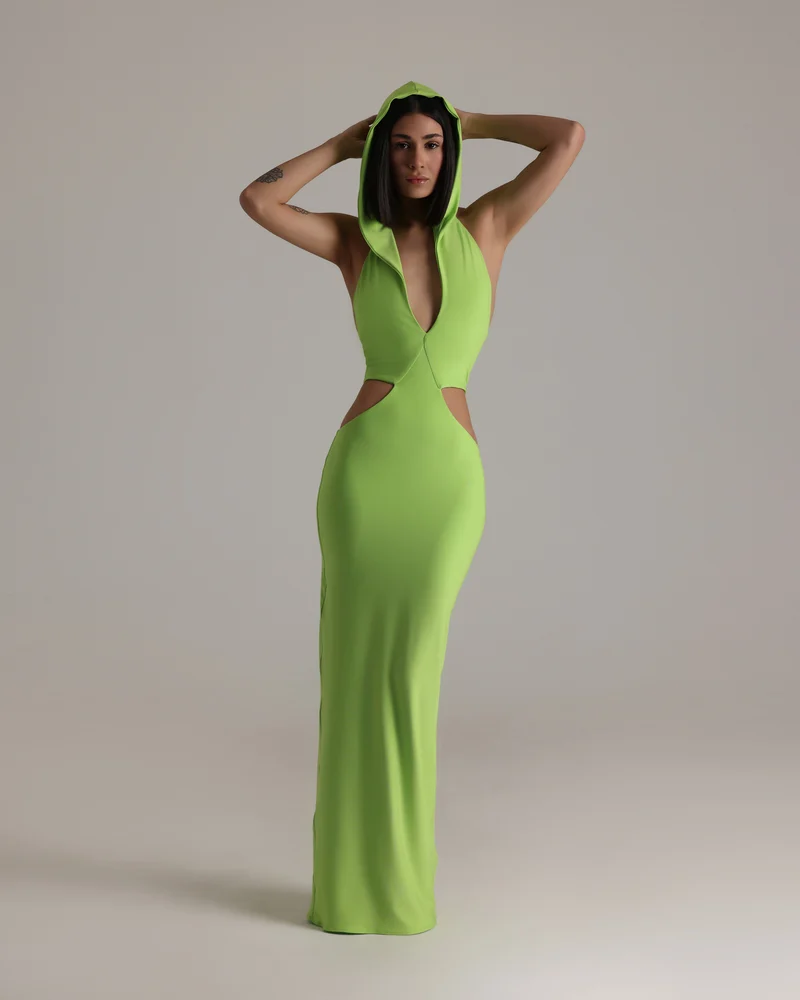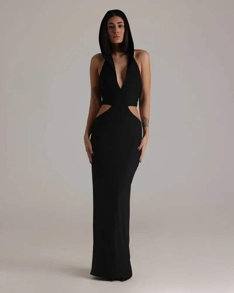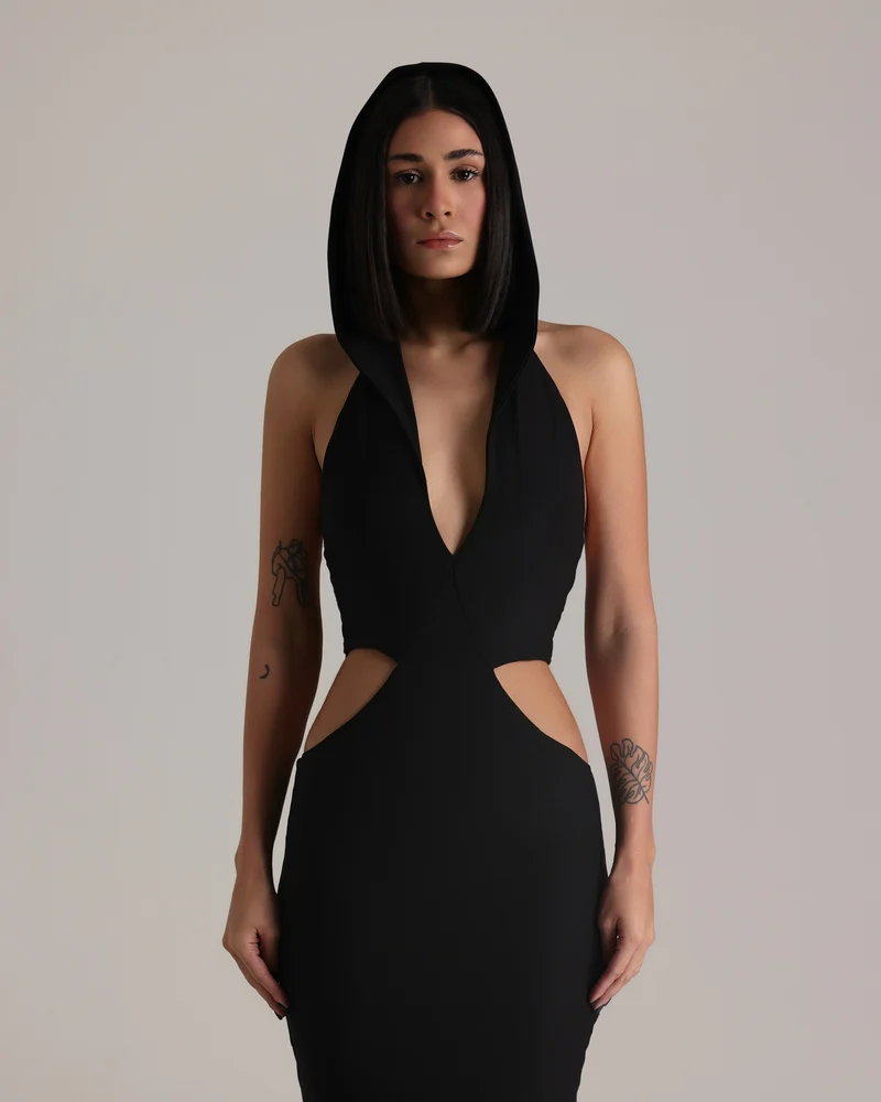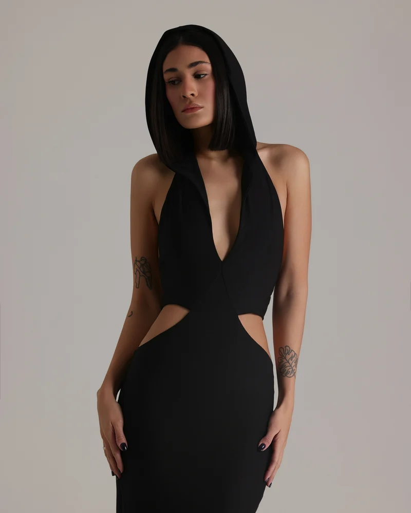 SKU: CED NEOG Category:Eveningwear Tag:Cut Out Dress with Hoodie