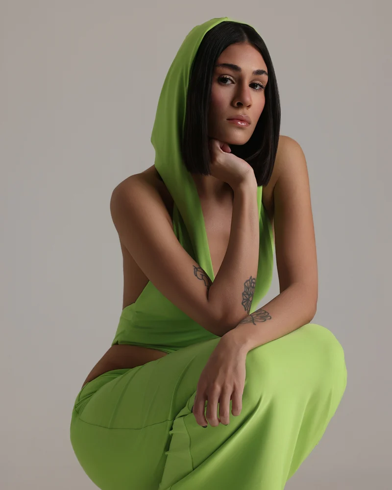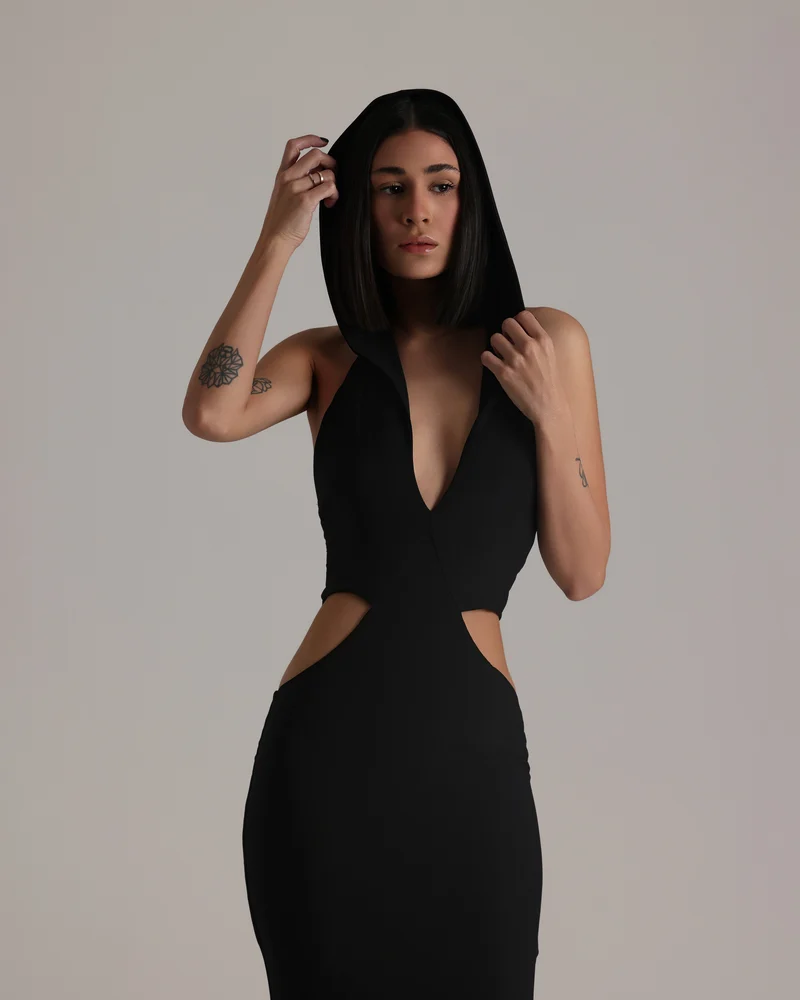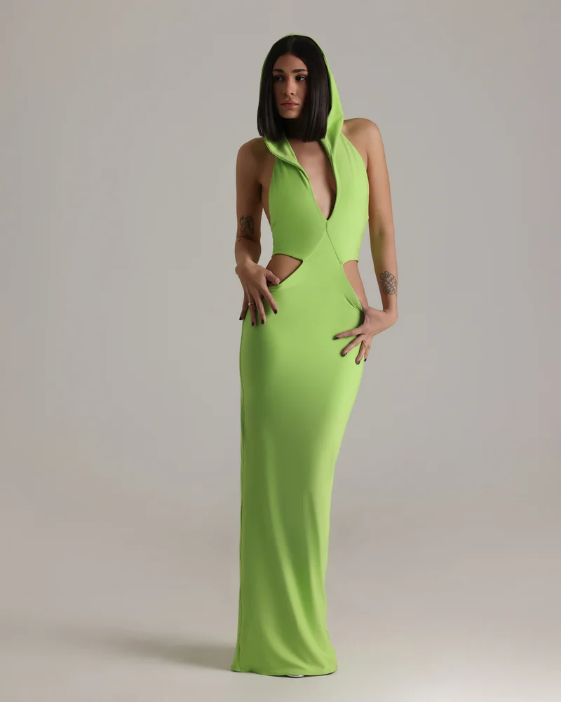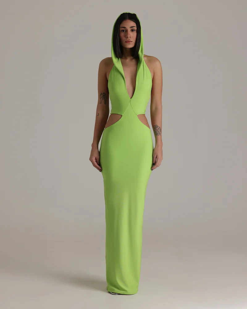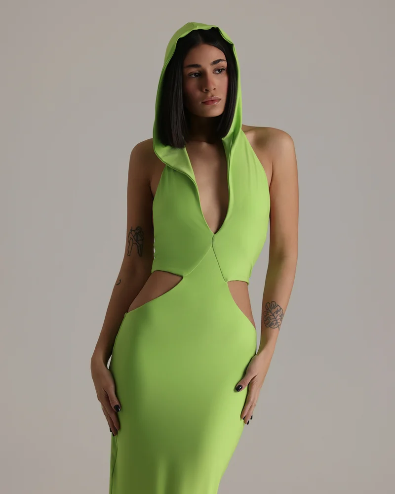 SKU: CED NEOG Category:Eveningwear Tag:Cut Out Dress with Hoodie