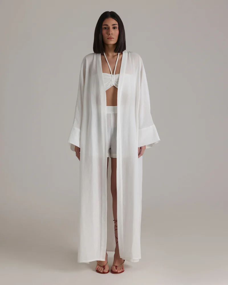 Buttery Soft Linen Kaftan with Matching Pants – Lightly Sheer for an Elegant, Ethereal Look